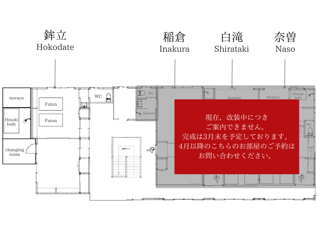 | 総客室数 | 5室(うち3部屋改修工事中) |
